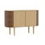 În spatele măsuței Treasures de la UMAGE se află designerul danez Jonas Søndergaard. În timp ce structura este realizată din furnir de stejar, părțile laterale rotunjite cu deschideri batante sunt acoperite cu rattan. Un raft este ascuns în spatele fiecăreia dintre ușile frontale.