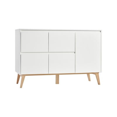 Amenajează camera celor mici în stil scandinav cu Pinio cu gama lor Swing. Această comodă este confecționată din plăci de lemn. Întreaga construcție este stabilă datorită picioarelor din fag masiv. Această combinație inteligentă de culori face ca această comodă să fie ușor de asortat cu restul interiorului. Pe lângă spațiul de depozitare, acesta oferă și o zonă pentru masa de înfășat.