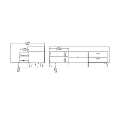 Cu dimensiuni de 182x62x51 cm oferă spațiu suficient pentru televizor și alte echipamente. Combinația de alb și aspectul de stejar creează un efect modern. Comoda dispune de două sertare, un dulap închis și un spațiu deschis cu rafturi. Un sistem integrat de gestionare a cablurilor asigură un aspect curat și ordonat.