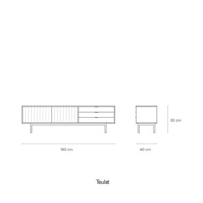 Comodă TV Sierra- cu aspect de lemn de stejar, din MDF, finisaj suprafață: furnir/finisaj suprafață: email, gri, lățime 180 cm, înălțime 52 cm, adâncime 40 cm
