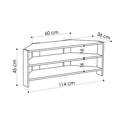 - pe colțCu aspect de lemn de stejarDin MDFFinisaj suprafață: melaminăÎn culoare naturalăLățime 114 cmÎnălțime 45 cmAdâncime 36 cm