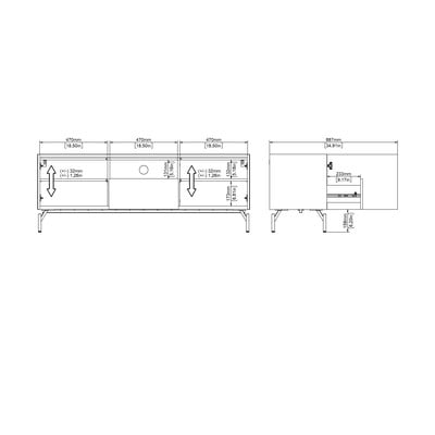 Această comodă cu lățime de 147 cm și aspect de stejar oferă mult spațiu de depozitare datorită celor două dulapuri cu rafturi reglabile și a unui sertar. Secțiunea centrală deschisă oferă acces ușor la echipamente, iar sistemul de gestionare a cablurilor menține totul organizat. Cu picioare metalice și un design modern, se potrivește într-o varietate de stiluri de amenajare interioară.