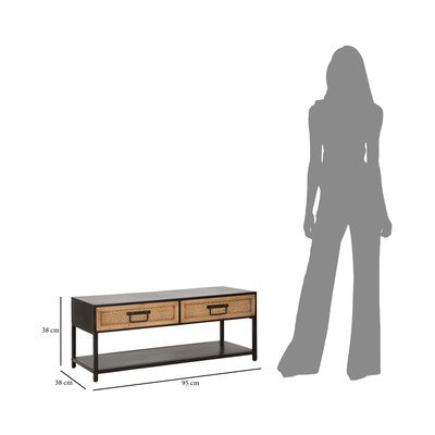 Comodă TV Hanoi- din metal, din MDF, neagră/în culoare naturală, lățime 95 cm, înălțime 38 cm, adâncime 38 cm