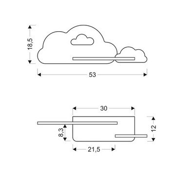 - LED, cu abajur din MDF, albă/roz, lățime 12 cm, lungime 53 cm, înălțime 18,5 cm