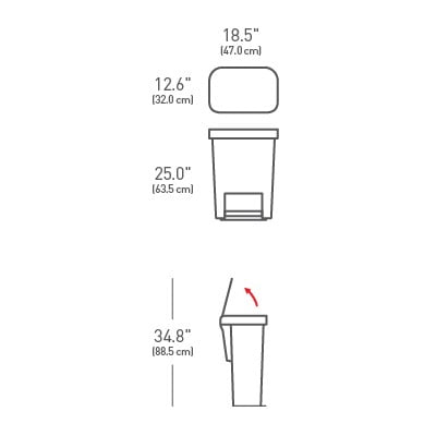 Datorită comenzii cu pedală, eliminarea gunoiului va fi rapidă, eficientă și foarte igienică. Pedala lată din oțel este concepută pentru a rezista mulți ani, iar tehnologia patentată Shox asigură că capacul se închide întotdeauna lin și silențios.