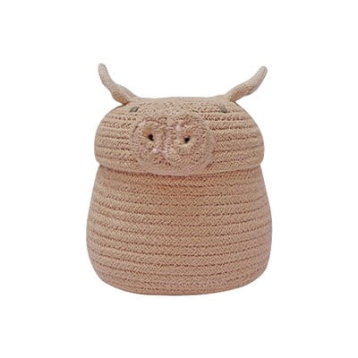 Coș de jucării pentru copii Mini Peggy the Pig- din material textil, roz deschis, ø 17x15 cm