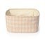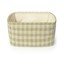 Coșul Swan Matcha de la Lorena Canals este un coș moale, matlasat, cu un model în carouri. Este realizat manual, ceea ce îl face o piesă artizanală unică.