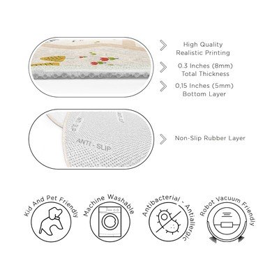 Covor de joacă pentru copii lavabil Savana Ride de la Mila Home. Materialul lavabil asigură o întreținere ușoară, iar motivul jucăuș cu savana îi invită pe copii la ore întregi de joacă.