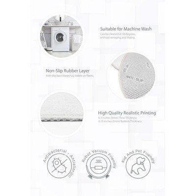 Covorul lavabil pentru copii Dainty Animals de la Mila Home are un motiv cu animăluțe adorabile, care va înveseli camera copilului, fiind și foarte practic.