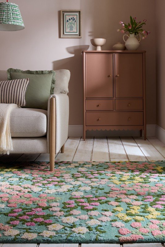 Covor verde mentă țesut manual din lână 160x230 cm Emilia Floral – Flair Rugs