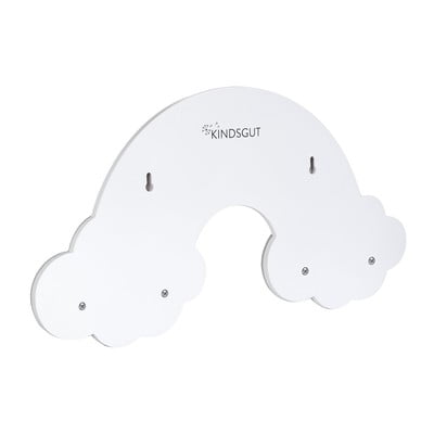 Decorează pereții camerei copilului tău cu cuierul practic de perete Kindsgut, în formă de curcubeu colorat și norișori. Este fabricat din lemn și oferă spațiu pe patru cârlige pentru agățarea hainelor sau a servietelor.