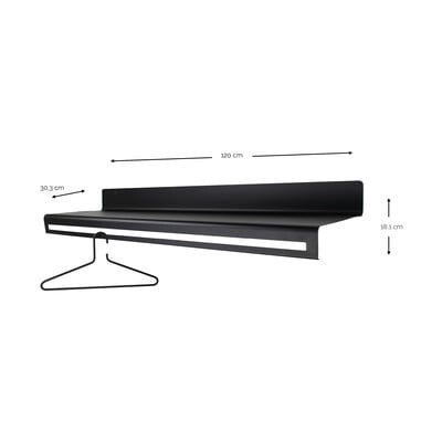 - cu raft, din metal, negru, lățime 120 cm, înălțime 18 cm, adâncime 30 cm