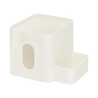 Cutia iDesign Caddy este concepută pentru a se potrivi cu aproape orice dimensiune de șervețele. Compartimentul superior de depozitare este excelent pentru păstrarea bijuteriilor sau obiectelor mai mici iar pe tăvița laterală se poate păstra sticluța cu dezinfectant sau șervețelele de machiaj.