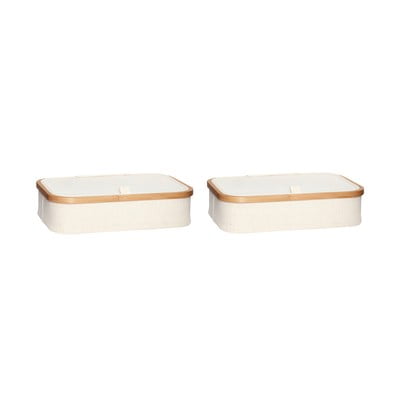 Cutii de depozitare Ecru- 2 buc., cu capac, din material textil, bej, 38x26x9 cm