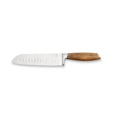 Cuțitul Santoku de la Holm face parte din linia lor de cuțite excelente. Mânerul său este fabricat din lemn de salcâm. Capătul mânerului este finisat elegant cu un capac din oțel.