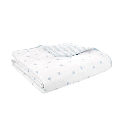 Cuvertură pentru copii albă-albastră matlasată din bumbac 135x190 cm Mini Star & Stripes – Bianca