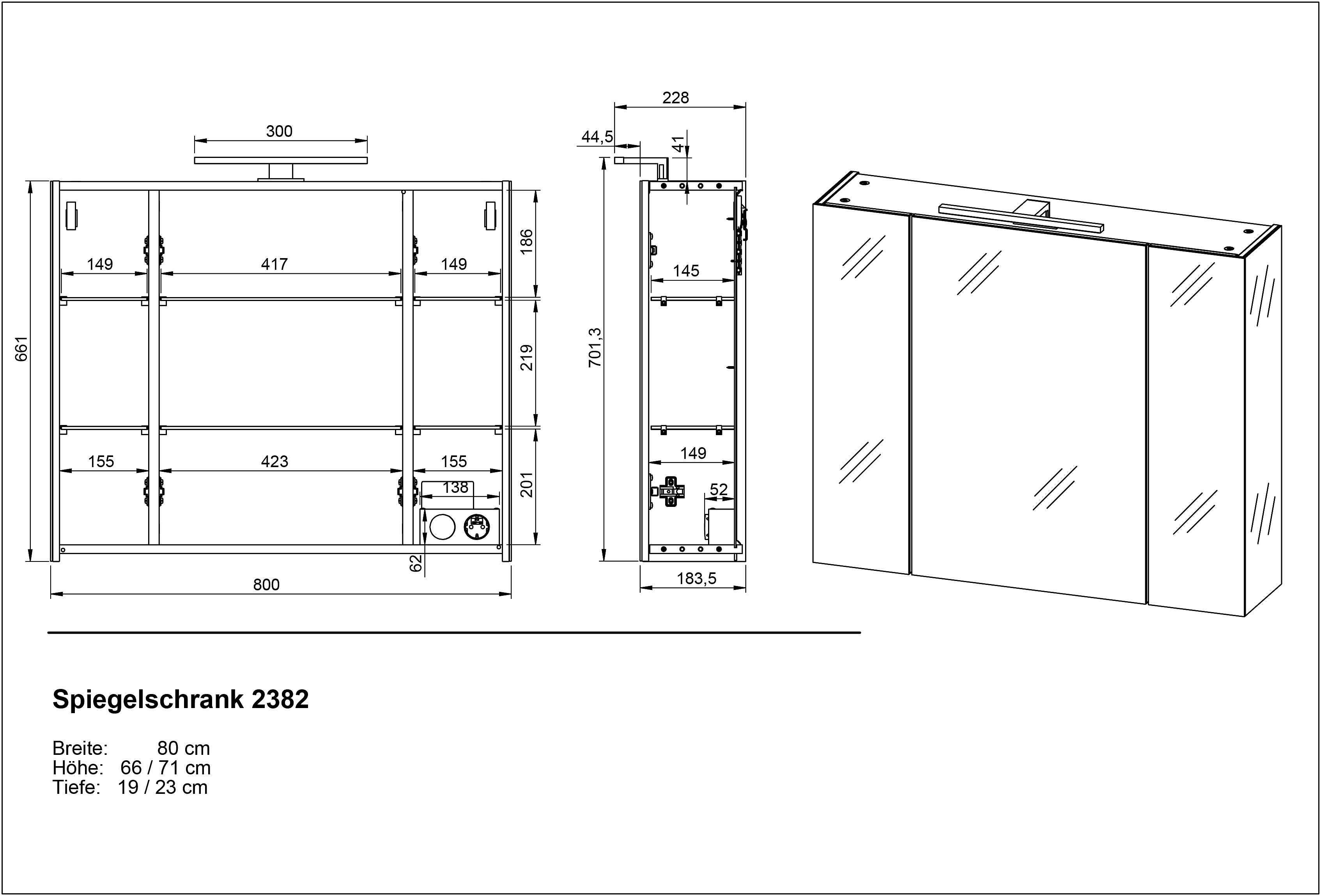 Dulap de baie- suspendat/cu oglindă/cu iluminare, din PAL (placă aglomerată de lemn), finisaj suprafață: melamină, gri, lățime 80 cm, înălțime 71 cm, adâncime 13 cm