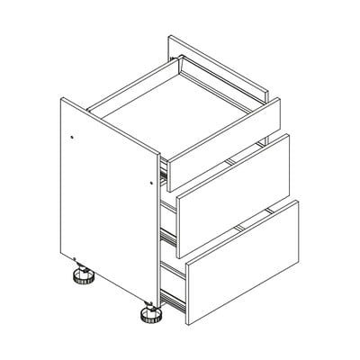 Este bine de știut: Deoarece dulapurile sunt livrate separat, puteți aranja ordinea dulapurilor după cum doriți. De asemenea, puteți alege dacă dulapurile se deschid pe partea stângă sau pe partea dreaptă. Plinte corespunzătoare lățimii dulapurilor și picioarele reglabile (100 mm), a căror înălțime poate fi ajustată cu aproximativ 2 cm pentru a compensa eventualele denivelări ale podelei, sunt, de asemenea, parte integrantă a dulapurilor.