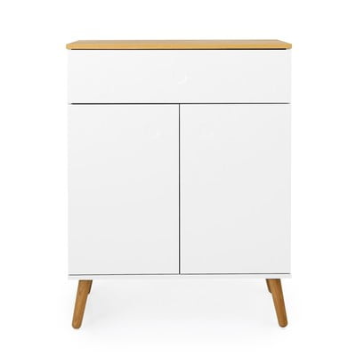 Comodă Dot- din PAL (placă aglomerată de lemn)/din MDF, finisaj suprafață: melamină/finisaj suprafață: email, albă, lățime 79 cm, înălțime 102 cm, adâncime 37 cm