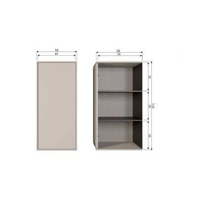 - din lemn de pin, finisaj suprafață: email, crem, lățime 50 cm, înălțime 110 cm, adâncime 58 cm