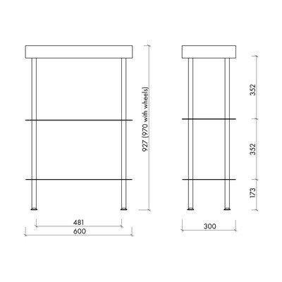 Etajeră pe roți Nolle- din metal, bej, lățime 60 cm, înălțime 97 cm, adâncime 30 cm