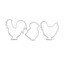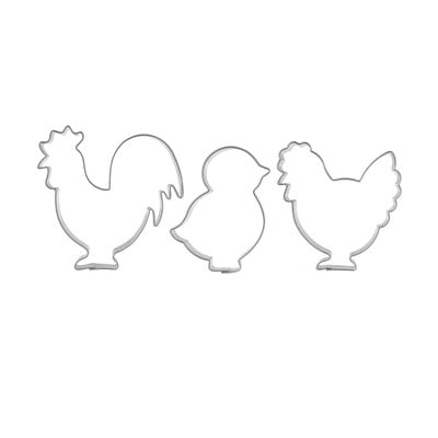 Dimensiunile formelor: cocoș 6,5 x 6,5 x 1,5 cm, găină 6 x 6 x 1,5 cm, pui 4 x 5 x 1,5 cm.