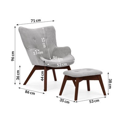 Fotoliu cu taburet bej cu tapițerie din catifea reiată Niko – Ropez