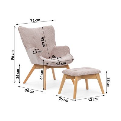 Fotoliu cu taburet bej cu tapițerie din catifea reiată Niko – Ropez