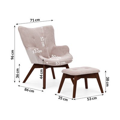 Fotoliu cu taburet roz deschis cu tapițerie din catifea reiată Niko – Ropez