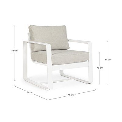 Fotoliul de grădină Merrigan din metal alb de la Bizzotto aduce eleganță modernă în amenajarea unui exterior. Cu un design geometric simplu, fotoliul este fabricat din metal și completat de o pernă bej confortabilă. Combinația neutră de culori alb și bej este atemporală și poate fi ușor asortată cu alte piese de mobilier și accesorii de grădină.