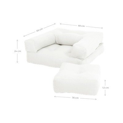 Fotoliu, taburet, saltea perfectă pentru joacă sau pentru gimnastică. Fotoliul variabil pentru copii Mini Cube poate îndeplini, cu brio, toate aceste roluri. Utilizarea sa principală este aceea de fotoliu, incluzând și un suport pentru picioare. Amplasând suportul pentru picioare în mijlocul fotoliului, obții un taburet înalt, de formă cubică. Iar atunci când cei mici au obosit, după o zi întreagă de zbenguială, poți întinde complet salteaua, amplasând taburetul în poziția lui, pentru a obține o canapea sau un pat pentru copii.
