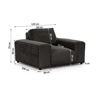 Fotoliu gri închis cu tapițerie din catifea reiată Justin – Ropez