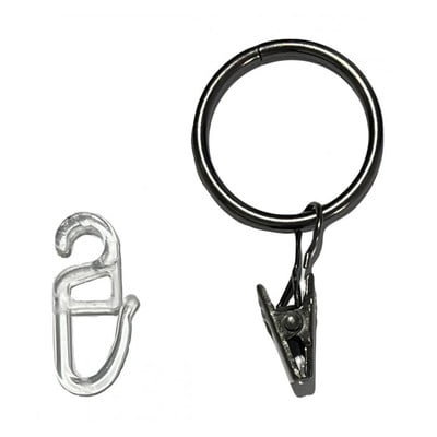 Inele cu cârlig pentru perdele- 10 buc., din metal/din plastic, negre