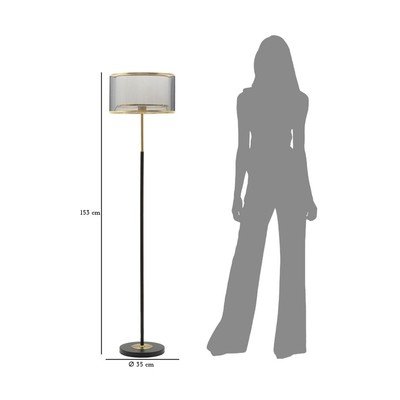 - cu abajur textil, negru/auriu, înălțime 153 cm