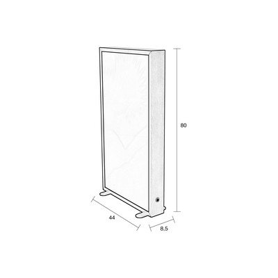 Este bine de știut: Lampa este realizată din MDF în culoarea stejarului închis. Două geamuri din sticlă acrilică cu transparență de 50% și 74% sunt fixate în rama din aluminiu.