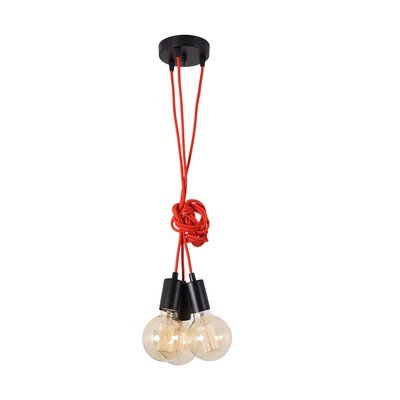 Un corp de iluminat cu adevărat elegant. Frumoasă culoare roșie, este ca și cum ar fi tricotată cu fire. Fitingurile negre sunt, de asemenea, minunate...