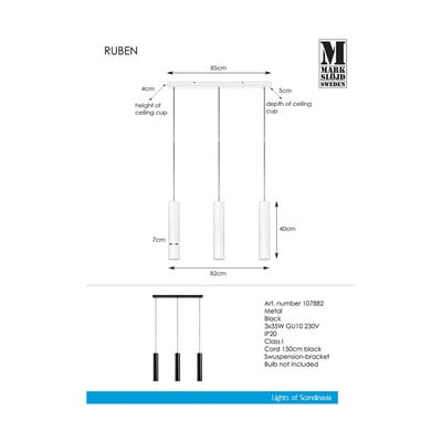 Lustră Ruben- cu abajur din metal, din metal, neagră, 7x82 cm, înălțime 190 cm