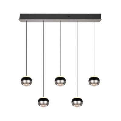 Lustră Orbit- LED, din metal, neagră/argintie, 10x100 cm, înălțime 200 cm