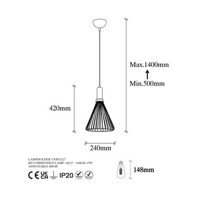 - cu abajur din metal, din metal, neagră, ø 24 cm, înălțime 42 cm