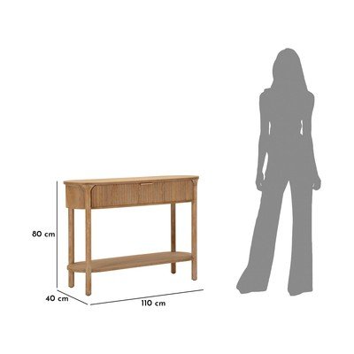 Masa consolă Gothenburg de la brandul Mauro Ferretti este o piesă de mobilier elegantă, care va completa perfect holul sau livingul tău. Blatul și raftul inferior au o formă ovală și sunt fabricate din lemn de brad, cu o textură distinctă.