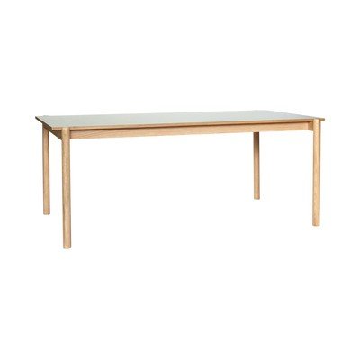 Blatul său este fabricat din linoleum neted și este susținut de picioare rotunde, solide, din lemn masiv de stejar, ceea ce îi conferă un aspect curat și stabil.