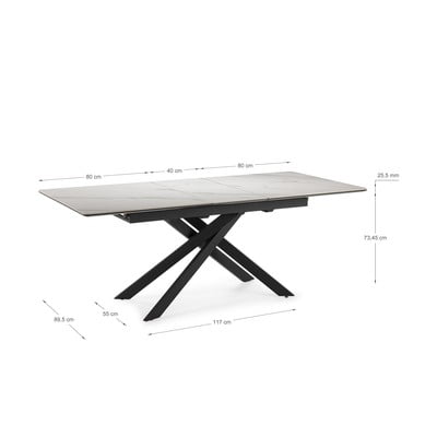 - extensibilă, cu blat suplimentar, cu blat ceramic, 89,5x160 cm, lungime după extindere 200 cm