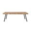 Masa de sufragerie White Label are un blat din lemn de tec reciclat, cu un finisaj din lac natural pe bază de apă. Distanța dintre picioarele din metal negru este de 167 cm.