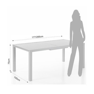 - din aluminiu, extensibilă, albă, 100x177 cm, lungime după extindere 266 cm