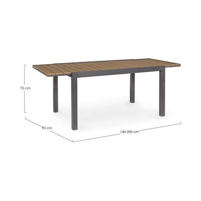 Masă de grădină Elias- din aluminiu, extensibilă, gri antracit/în culoare naturală, 90x140 cm, lungime după extindere 200 cm