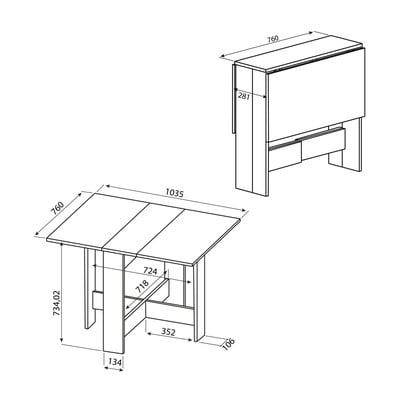 - extensibilă, cu blat suplimentar, 76x103 cm