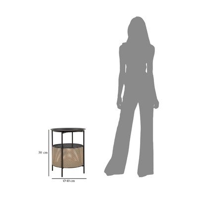 Măsuță auxiliară Osaka- din metal, neagră/în culoare naturală, ø 40 cm, înălțime 50 cm