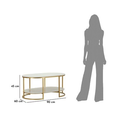 Măsuța de cafea Izmir de la brandul Mauro Ferretti este un accesoriu elegant pentru living. Are o formă ovală și îți pune la dispoziție două suprafețe de depozitare, ideale pentru a așeza decorațiuni, cărți sau o ceașcă de cafea. Distanța dintre cele două polițe este de 28,5 cm.