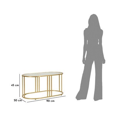 - cu blat din sticlă, albă/aurie, 50x90 cm, înălțime 45 cm