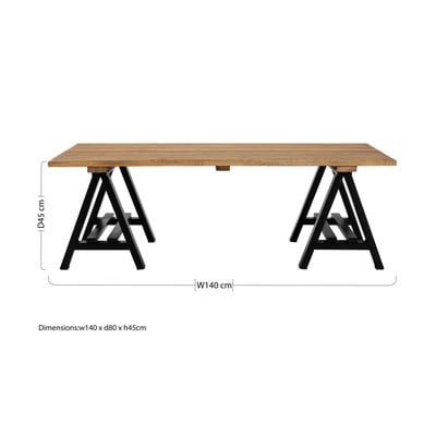 - cu blat din lemn de pin, în culoare naturală, 80x140 cm, înălțime 45 cm